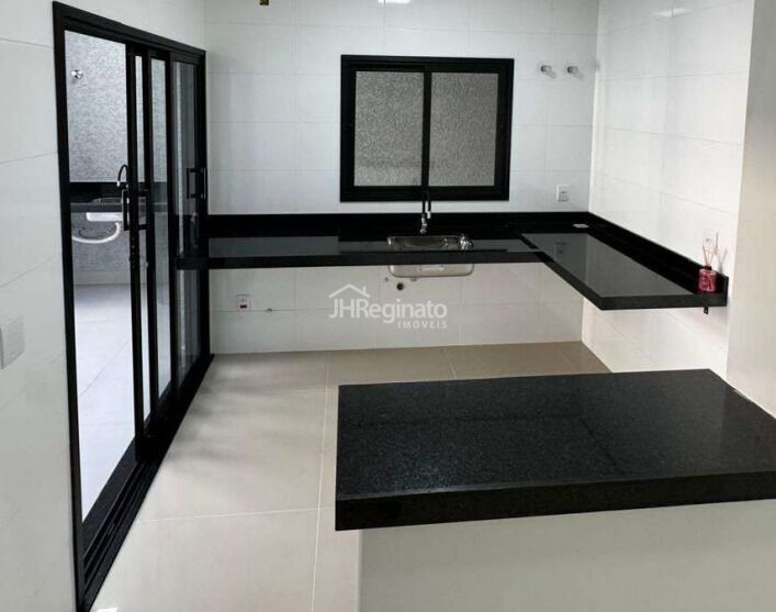 - Cozinha com pia em L e balcão em granito preto;